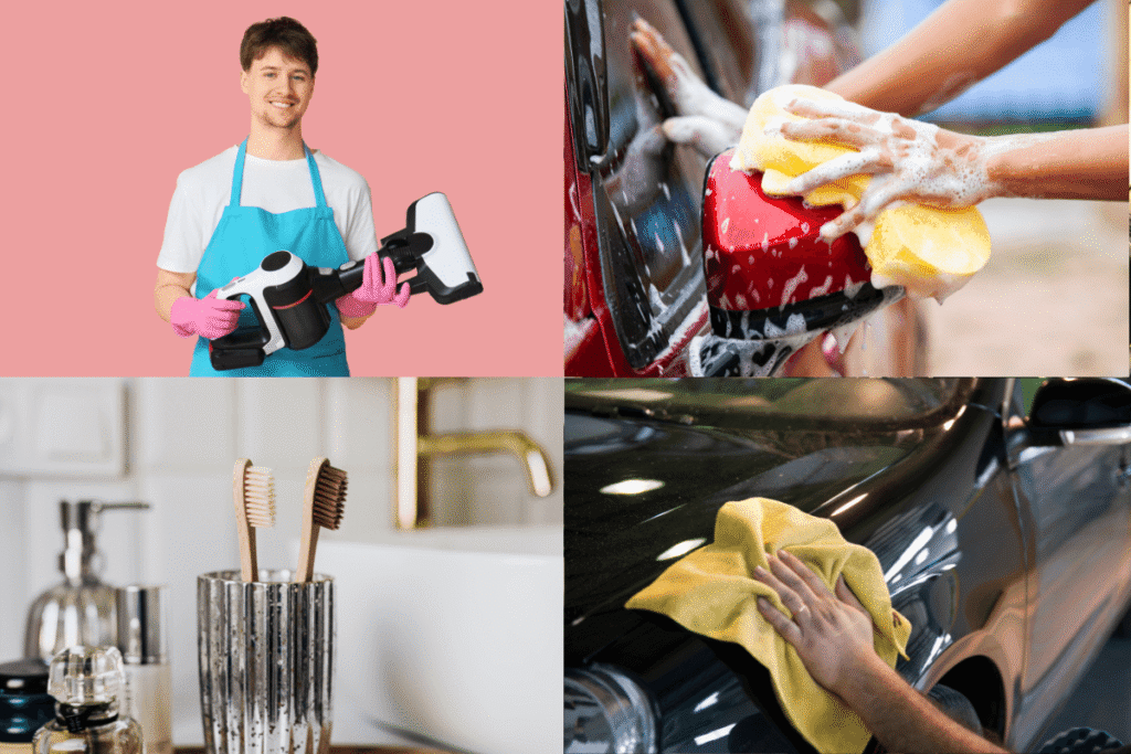 まず揃えたい基本道具は、マイクロファイバークロス(2〜3枚)、柔らかいスポンジ、歯ブラシ(細部用)、バケツ、そして掃除機です。